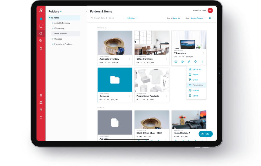 • Pictures, barcodes/QR codes, low stock alerts, and more make managing inventory efficient